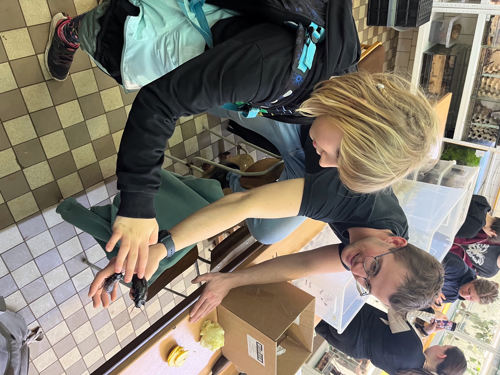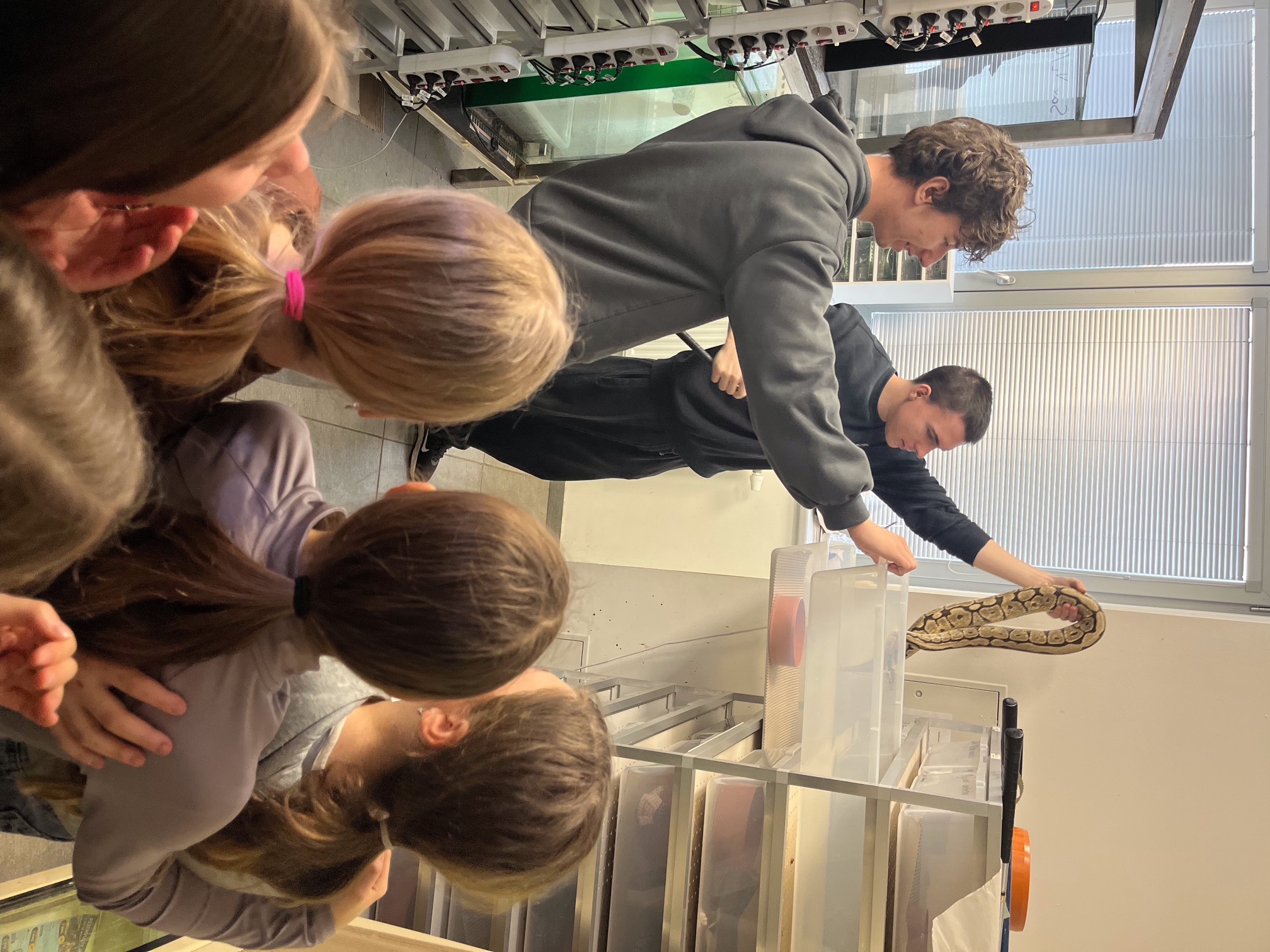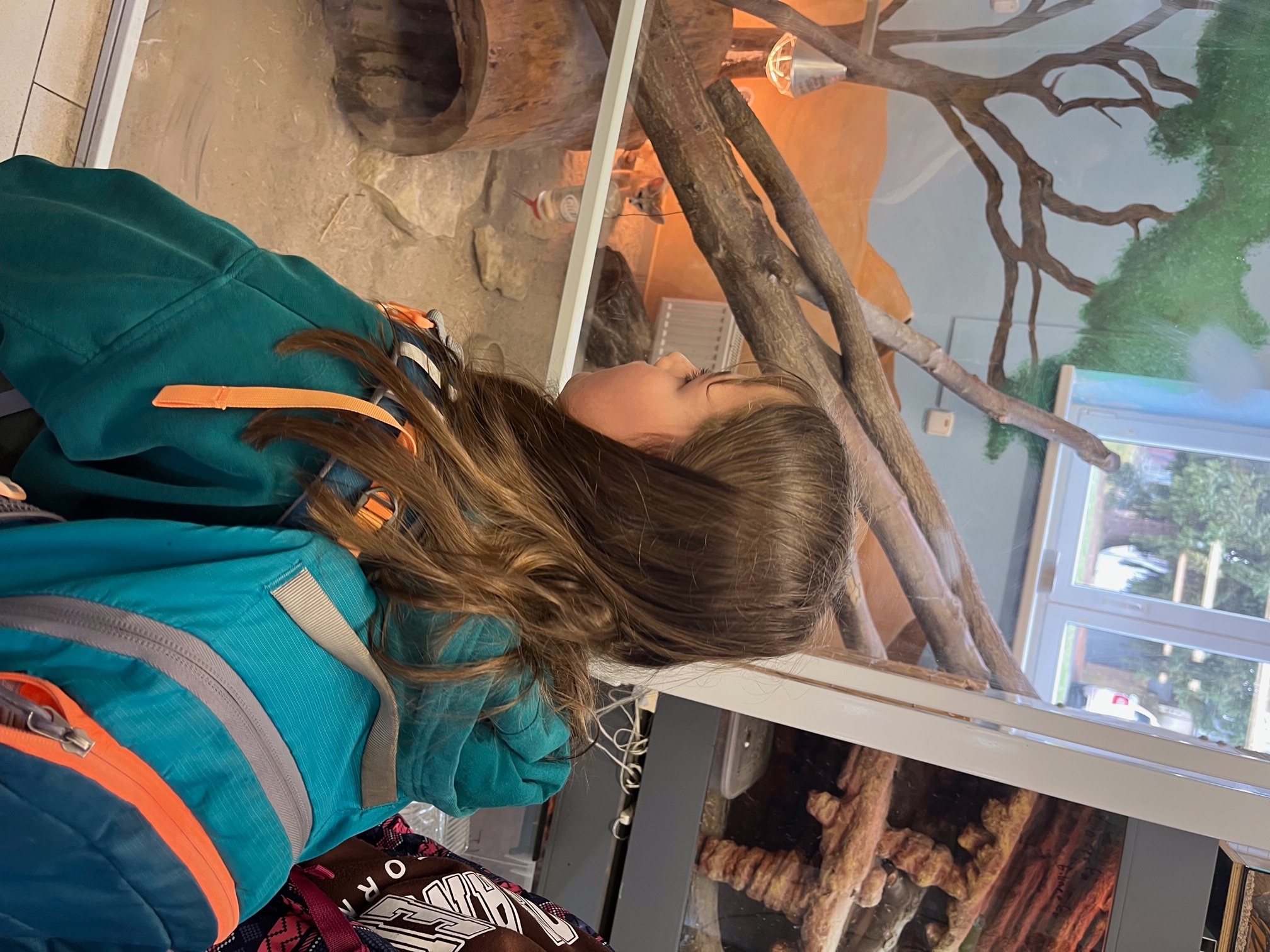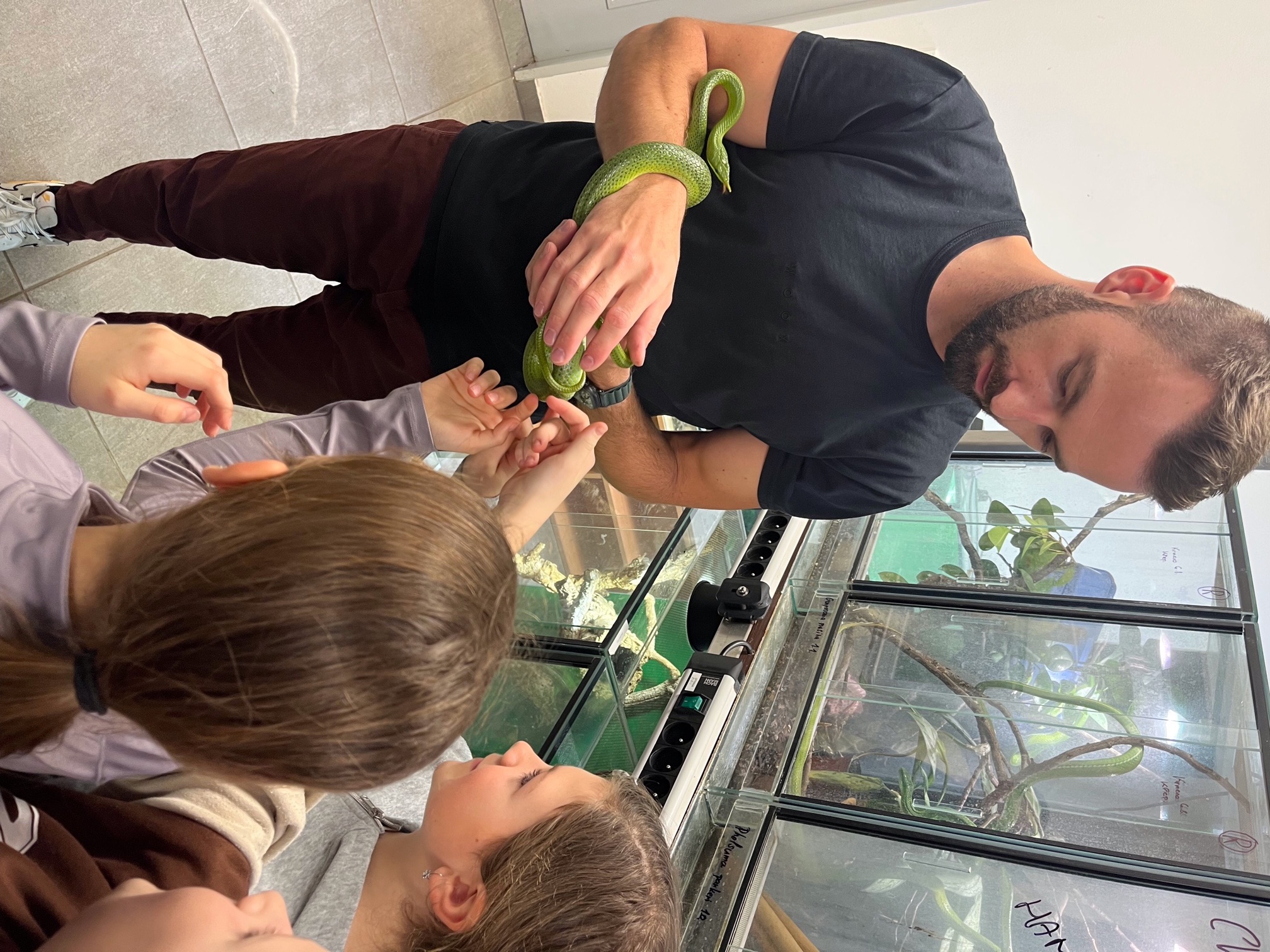 Viděli jsme různé druhy hadů, ještěrek, želv, hmyzu a tak dál.Překvapilo nás, že pamlok sibiřský vydrží až - 40 stupňů Celsia. Dozvěděli jsme se také, že mládě hada se poprvé nají, až po prvním svléknutí z kůže a spoustu dalších zajímavých informací. Nejvíc roztomilé zvíře, co tam měli, tak byl fenek. Mohli jsme si pohladit dva velké šváby, mnohonožky, hada a velkou kobylku a mohli jsme si odnést i hadí kůži. Mají často dny otevřených dveří a dá se tam zajít s rodinou. Jestli máte chuť vidět to co my, tak se podívejte na stránky školy.