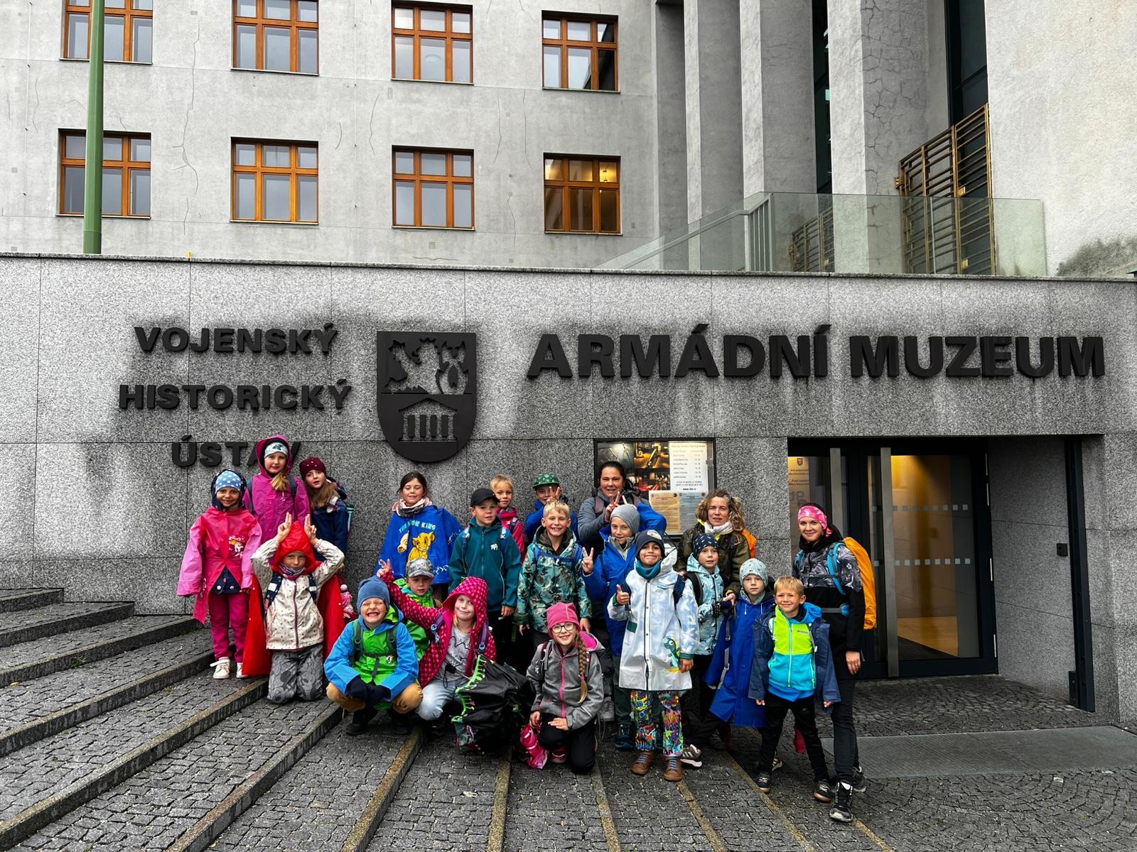 Žáci 2. a 3. třídy se vydali na exkurzi do Prahy. Původně byla v plánu dopolední procházka historickým centrem, ale kvůli nepříznivému počasí jsme program na poslední chvíli změnili. Dopoledne jsme navštívili Národní zemědělské muzeum, kde jsme si prošli expozice Rybářství, Lesnictví, Fotosyntéza a Gastronomie. Muzeum je velmi interaktivní, a tak jsme si vše mohli vyzkoušet a osahat. Odpoledne nás čekal program ve Vojenském historickém ústavu na Žižkově s názvem "Český lev se schovává v muzeu". Ten krásně navázal na probírané učivo o státních symbolech. Díky milé průvodkyni jsme se seznámili s pojmy muzeum, exponát, kurátor i legenda. Poslechli jsme si pověst o Bruncvíkovi, která vysvětlila, jak se český lev dostal do státního znaku. Program obsahoval názorné ukázky a praktické aktivity, mezi nimiž velký zážitek představovala možnost vyzkoušet si repliky helem a zbraní. Ačkoliv nám počasí nepřálo, den jsme si užili naplno a odnesli si spoustu nových zážitků i poznatků.