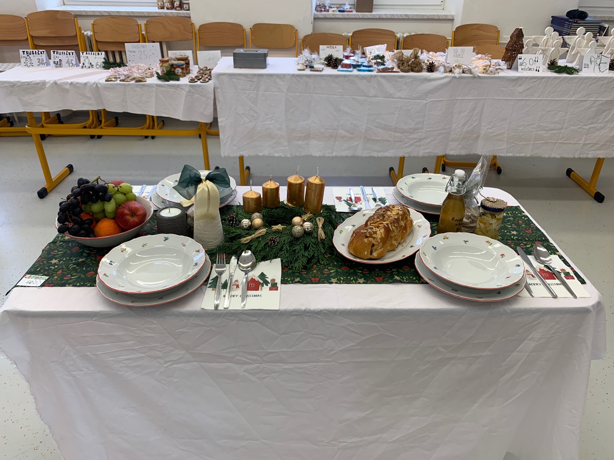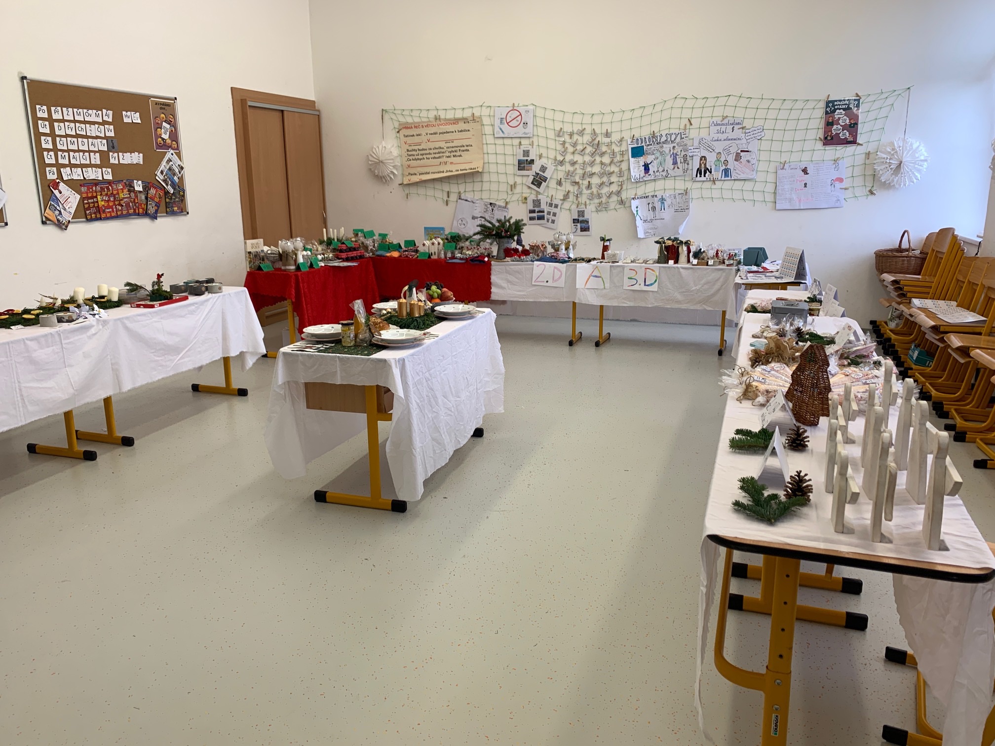 Každá třída si na jarmark připravila své vlastní výrobky, převážně s vánoční tematikou, a žáci přinesli také dekorace a drobnosti, které vyráběli doma společně s rodiči. Děti si tak mohly vyzkoušet nejen kreativní tvoření, ale i samotné prodávání vlastních výrobků, komunikaci se zákazníky a radost z úspěšného prodeje. Celé odpoledne proběhlo v přátelské a sváteční atmosféře a pro všechny zúčastněné se stalo krásným naladěním na blížící se Vánoce.